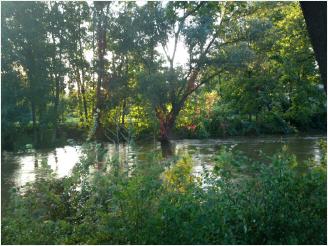 ... und wieder ist die Spree fast (fehlen nur einige wenige Zentimeter) so hoch wie beim letzten Mal.