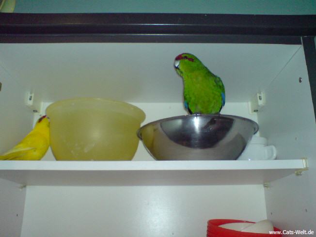 Zu Hause gleich erstmal im Vogelforum informiert, damit wir auch ja nix falsch machen, stand dort dann paarweise halten und somit kam auch Whisky I in unsere Familie.