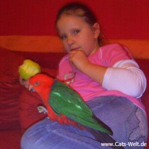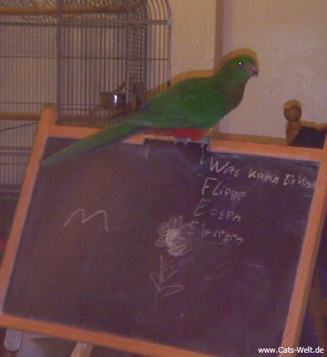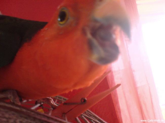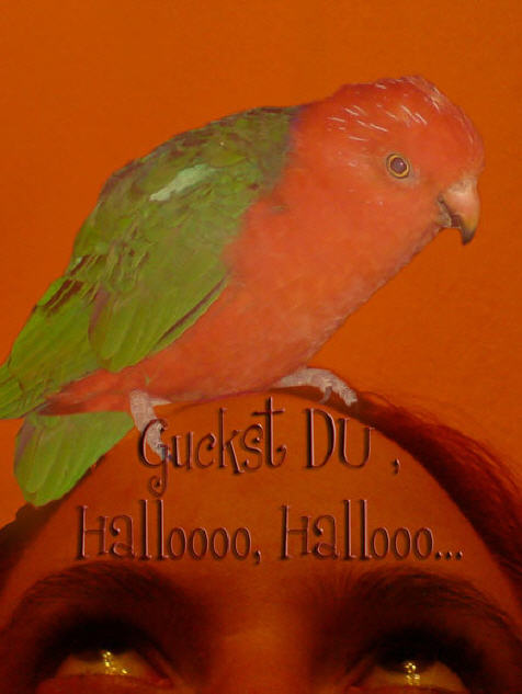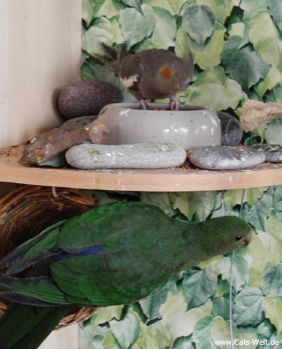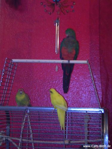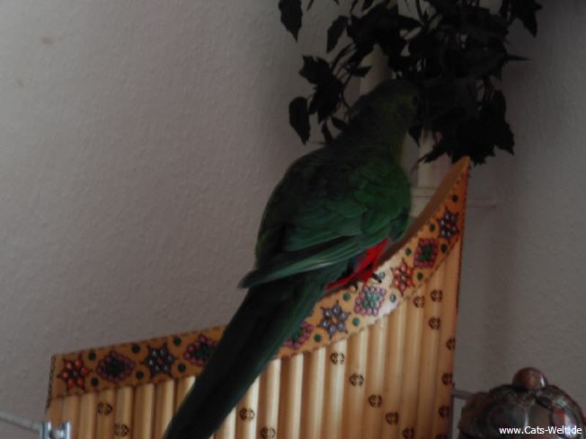 Ein sehr schöner Vogel, immer neugierig und mit unseren anderen Piepern in allen Ecken unterwegs. Charly entpuppte sich dann als eine "sie" und wollte sich vom Jimmy (einem Ziegensittichmann) gerne füttern lassen.